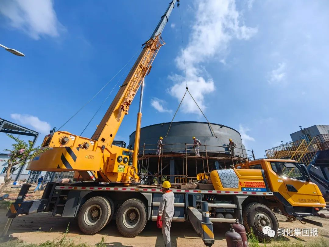 項目完工投用后,每年可處理選礦廢水247.5萬立方米、酸性廢水1000萬立方米,去除COD1485噸、硫化物146.03噸、重金屬錳208噸,在保障原生產(chǎn)線正常運(yùn)行的同時,顯著降低相關(guān)污染物排放,實現(xiàn)外排水水質(zhì)穩(wěn)定達(dá)標(biāo),有效保護(hù)當(dāng)?shù)厮h(huán)境,環(huán)境效益和社會效益顯著。上圖為吊裝作業(yè)現(xiàn)場。